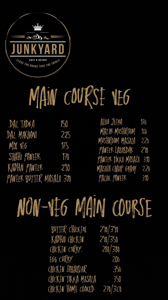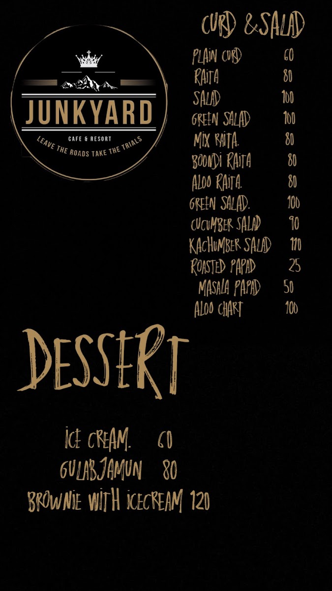 JUNKYARD CAFE & RESORT Menu